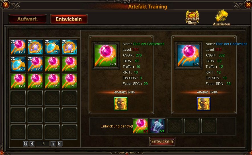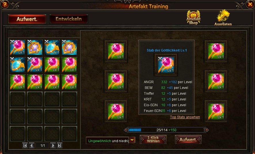 Die Funktion Artefakte steht ab Lv. 70 zur Verf?gung.