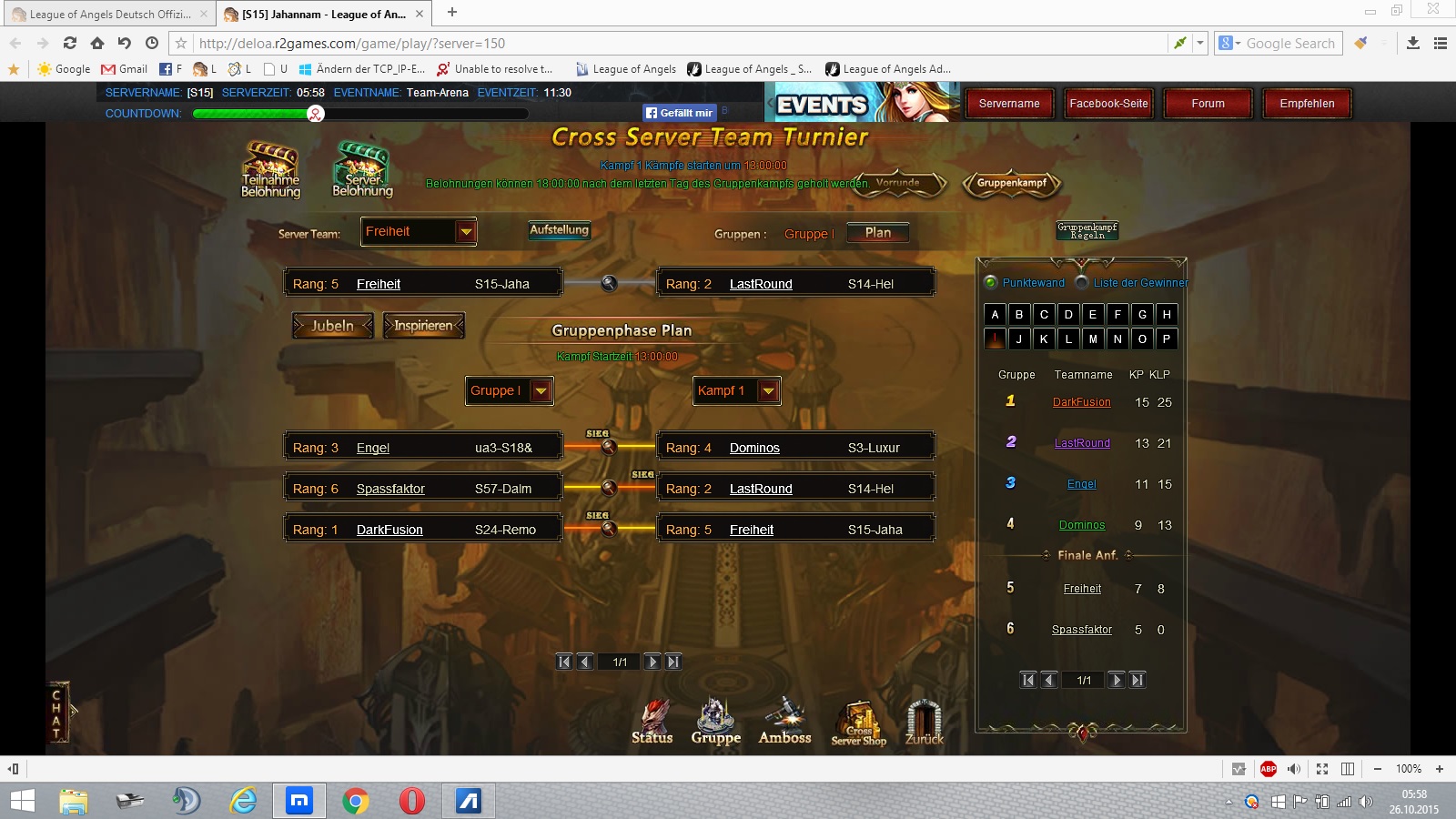 Nimm mit deinem Team am Cross Server Team Turnier von League of Angels teil! W?hrend dem 5 t?gigen Turnier, werden die Elite Teams aller Server an der Meisterschaft teilnehmen. Die Gewinner erhalten die Chance auf ein Inferno Ross! F?r mehr Informationen lese bitte unten weiter.