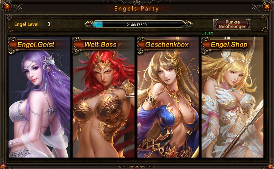 Beschreibung: Klicke auf das Engels Party Icon oder besuche Varda um die Party Events zu sehen: Engel Geist, Welt-Boss, Geschenkbox und den Engel Shop.