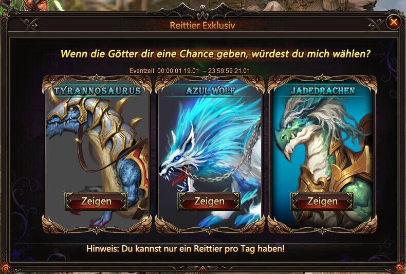 Du kannst nur ein Reittier pro Tag w?hlen, also w?hle weise!