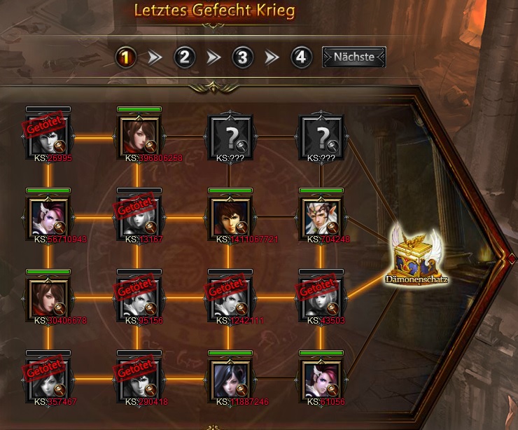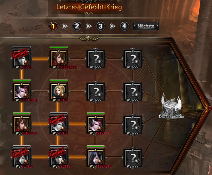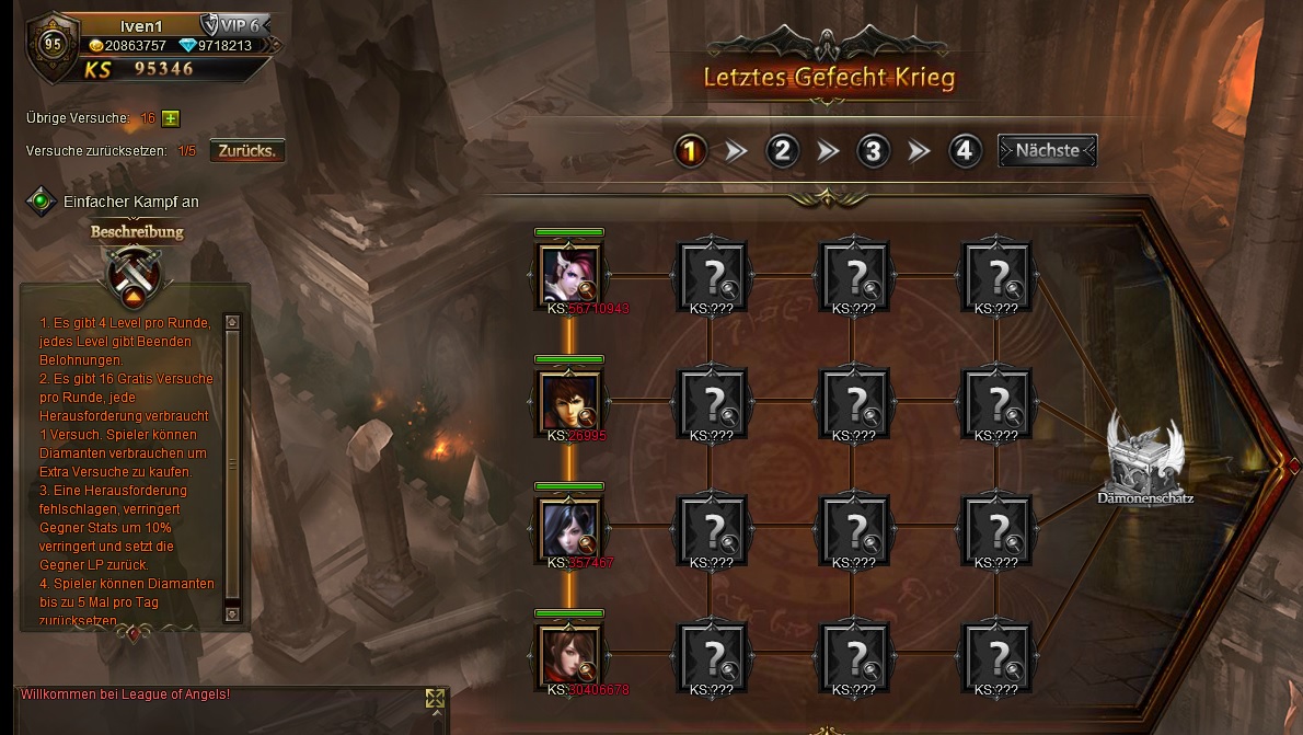 Besiege einen Gegner in der letzten Reihe um das Level zu Beenden. Es gibt 4 Level zu beenden, jedes Level gibt Belohnungen. Spieler haben die Chance Khaos Kerne aus D?monenschatz zu erhalten, die im Khaos Atlas benutzt werden k?nnen.