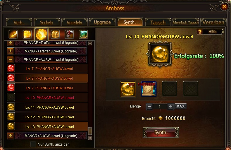 Und direkt dazu die Option f?r Lv. 7-13 Fusion Juwelen PANGR+KRIT TAUSCH in Amboss hinzuf?gen.