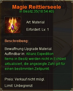 Die Aufwertung dieser Bewaffnung erfordert ein bestimmtes Item ? Magie Reittierseele, die erh?ltlich in Alliance Expedition ist.