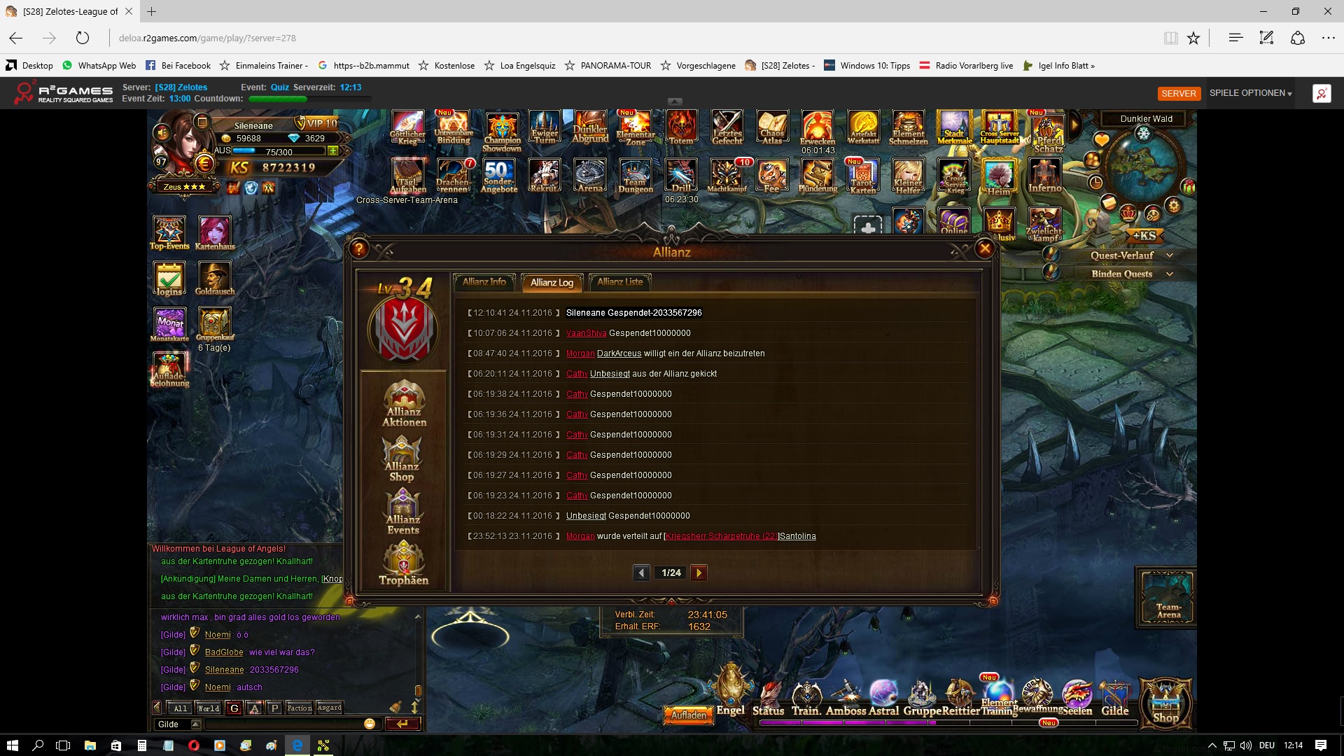 8. Max Goldlimit f?r Allianz Spende wurde erh?ht (von 10M Gold auf 10 Milliarden Gold).