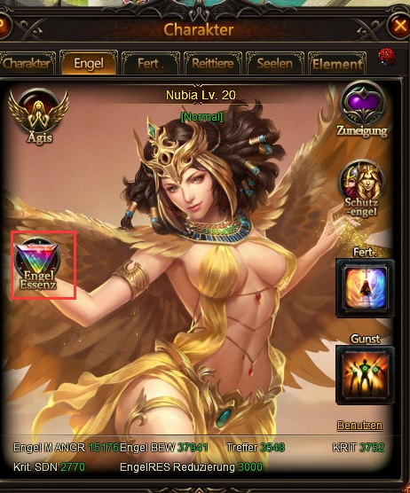 Klicke Engel Essenz Icon im Engel Abschnitt des Charakter Panels.