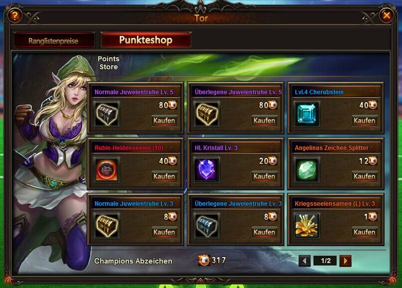 3) Die gesammelten Champion Abzeichen kannst du im Punkte-Shop gegen allerlei Items eintauschen.