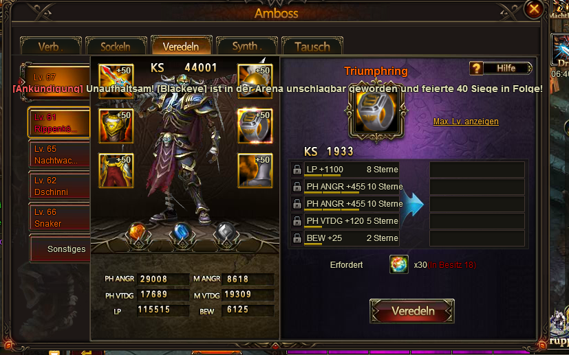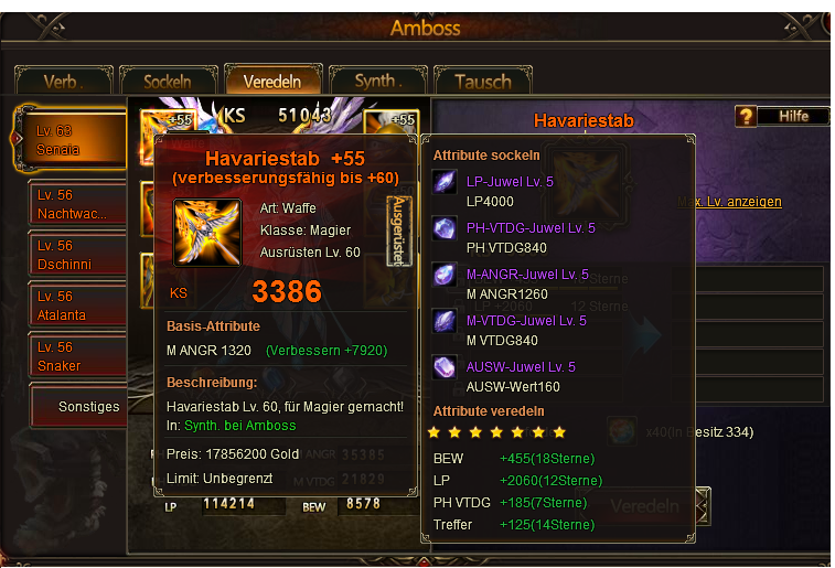 Ich habe ebenfalls Probleme beim Veredeln. Bei meinem Hauptcharakter beim Ring alle werte ?ber 5, zeigt aber nur 4 an und gibt nicht den 3. Bonusstein. Nun habe ich mit nochmals Veredeln probiert. Nun verbraucht es nur noch die Veredelungssteine und es passiert garnichts mehr. w?re sch?n, wenn mann im Spiel sofort ein Ticket zum Problem ?ffnen und schreiben k?nnt, oder gibts das und ich weiss nicht Bescheid?