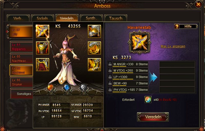 Server 1 Honeymaid: 2 meiner havarie helme haben nur 4stats statt der n?tigen 5 somit kann ich sie nicht veredeln