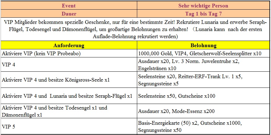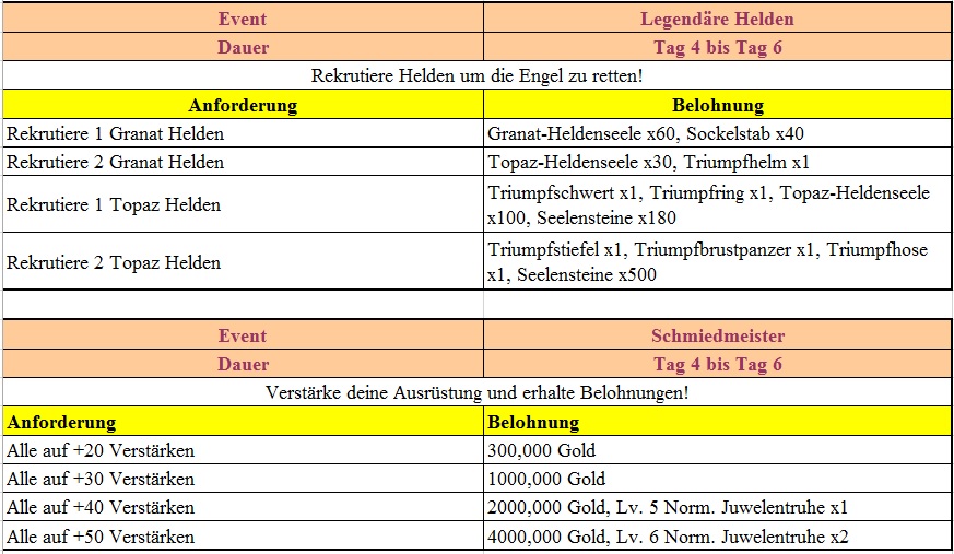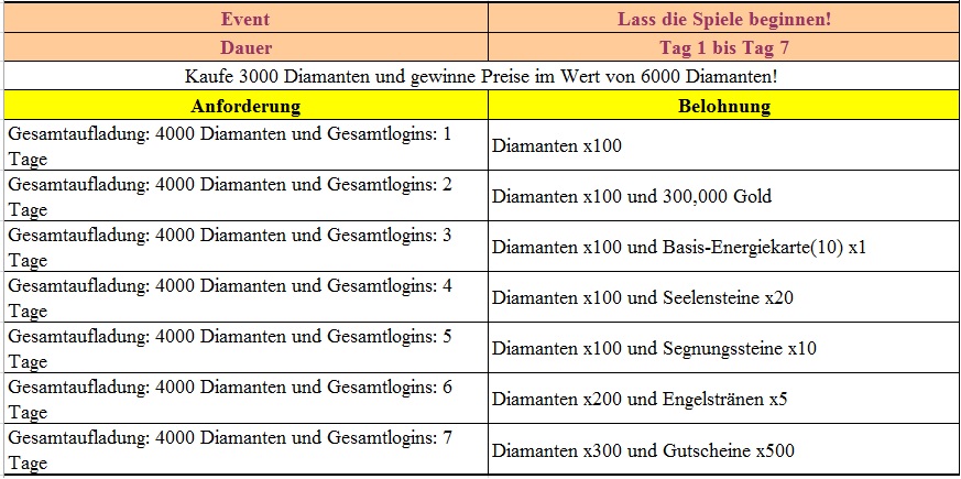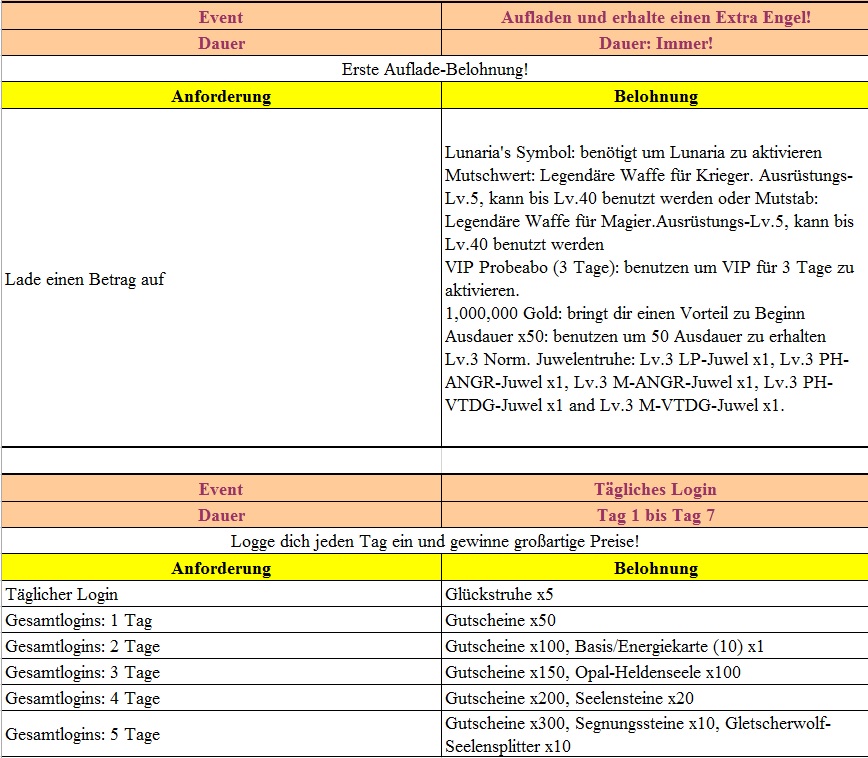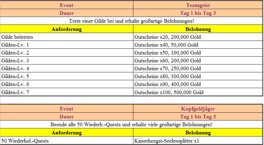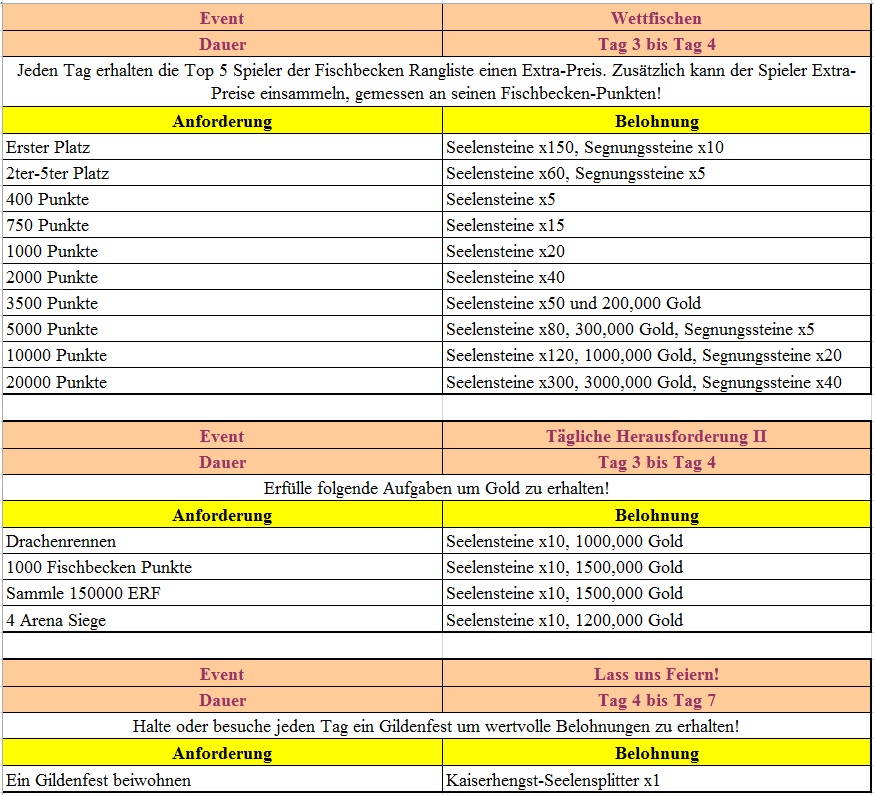 Events in der 1.Woche des Serverstarts