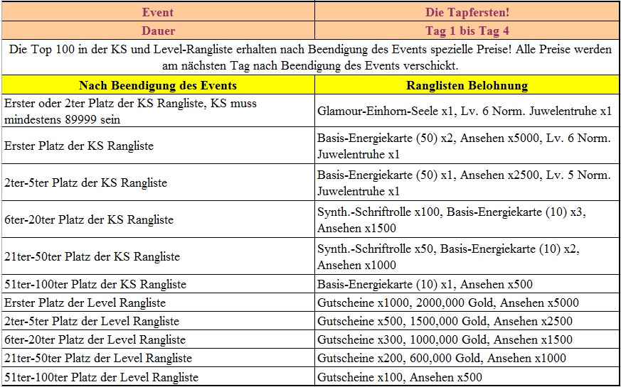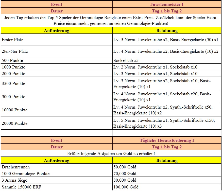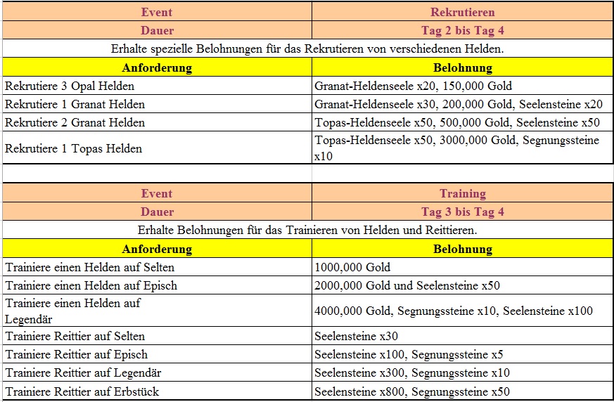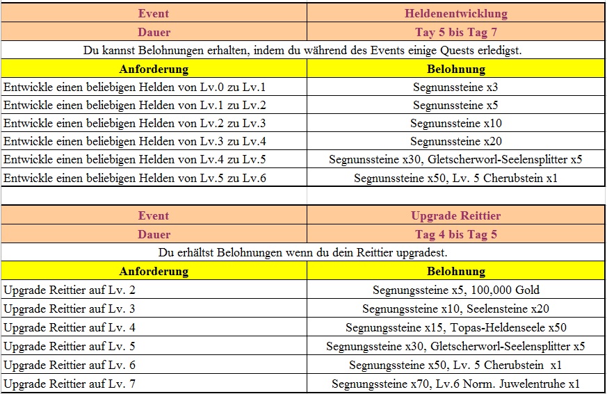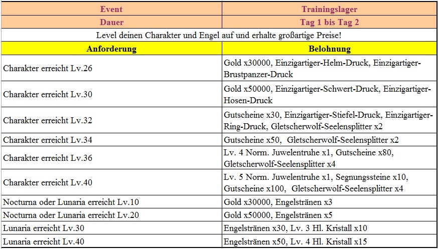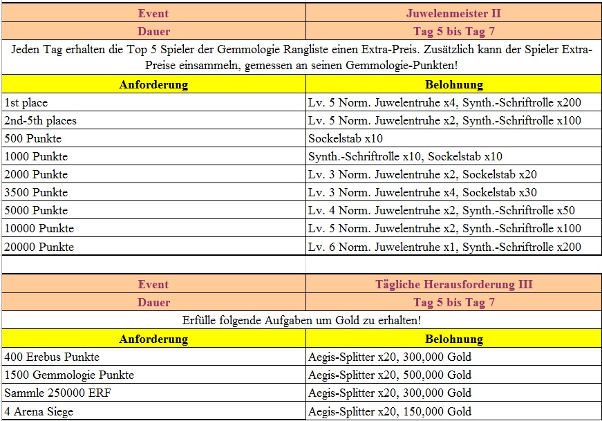 Events f?r die 2. und 3. Woche findet ihr
