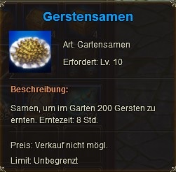 Du kannst Gerstensamen in den Events erhalten und auf deiner Farm anbauen, um Gerste zu erhalten, die du dann gegen Gerstensaft tauschen kannst! Du kannst auch den Gerstensaft in einigen Events erhalten.
