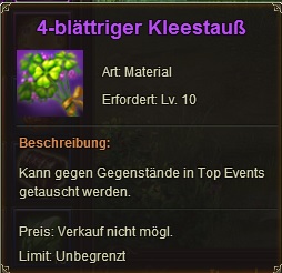 Neue Items: das 4-bl?ttriger Klee und 4-bl?ttriger Kleestrau? kann man jetzt im Gl?cksrad erhalten und gegen seltene Gegenst?nde eintauschen!