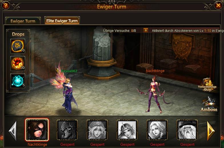F?r jedes Level (z.B. Level 1 Stufe 10), das du in Ewiger Turm absolvierst, aktiviert sich ein Turmw?chter im Elite Ewigen Turm.