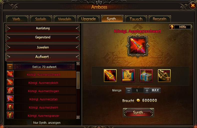 Aktiviere das Lv.70 Mythische Set im Amboss