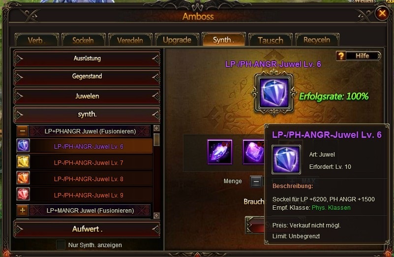 Synth Funktion f?r Juwelenfusion in Amboss verf?gbar.