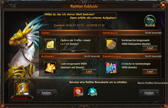 Hinweis: Die Bonuskarte kann nur verwendet werden, nachdem das Reittier im Reittier Exklusiv Event erhalten wurde.