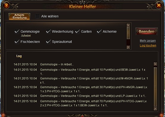 Bist du es leid, die zeitfressenden Wh.-Quests zu bestreiten? Jetzt kannst du den Kleinen Helfer engagieren, der f?r dich die ganzen t?glichen Quests blitzt, um Gold, Juwelen und vieles mehr noch schneller einzusammeln. Klicke einfach auf das Kleine Helfer Icon oben im Hauptbildschirm