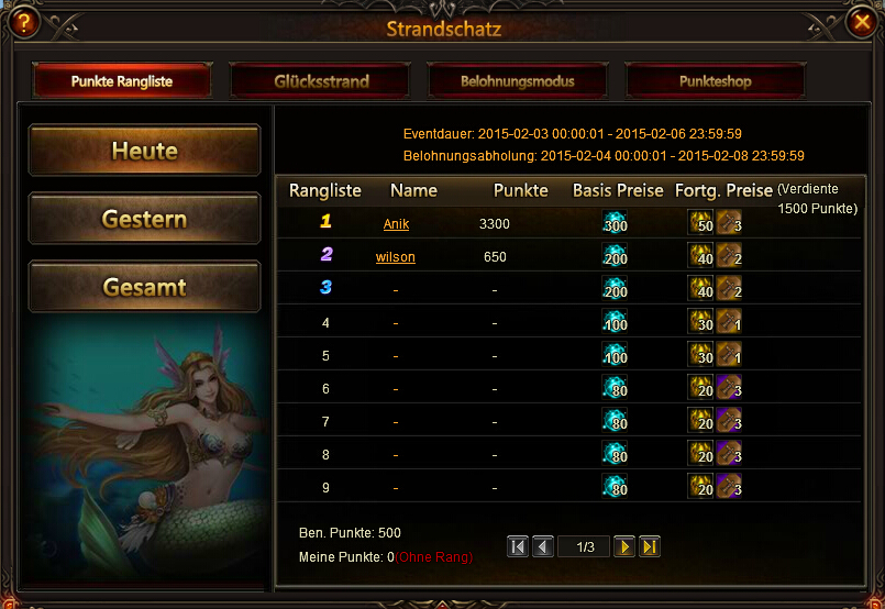 3. Jeden Tag um 8:00 Uhr, 12:00 Uhr, 16:00 Uhr und 20:00 Uhr k?nnen Spieler 8 Gratis Muschelpunkte holen, bitte sammle die Muschelpunkte zu der vorausgesetzten Zeit ein.