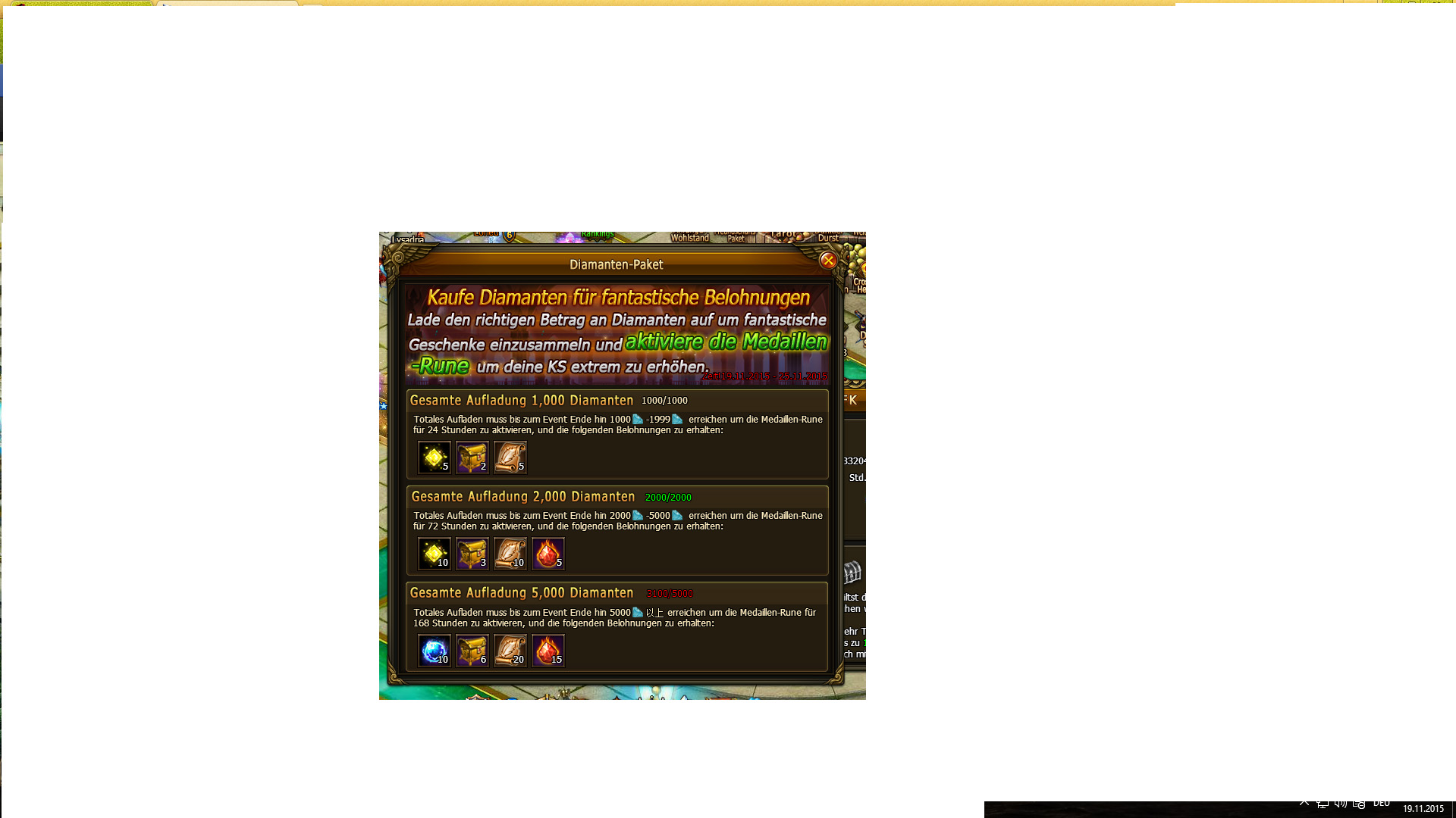 Hallo mal ne Frage ich hab dieses neue Event Diamantenpaket genutzt habe Dias aufgeladen bekomme aber keine Belohnung (Drachentruhe 2x, 5x Gebetsrolle und 5x Sternkristall)