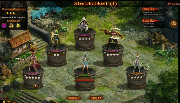 - Jedes Level hat einen Boss mit einem zuf?lligen Sterne-Level. Je h?her das Level, desto h?her die Schwierigkeitsstufe. Spieler k?nnen ?Aktualisiere ?? oder ?1-Klick 5?? benutzen.