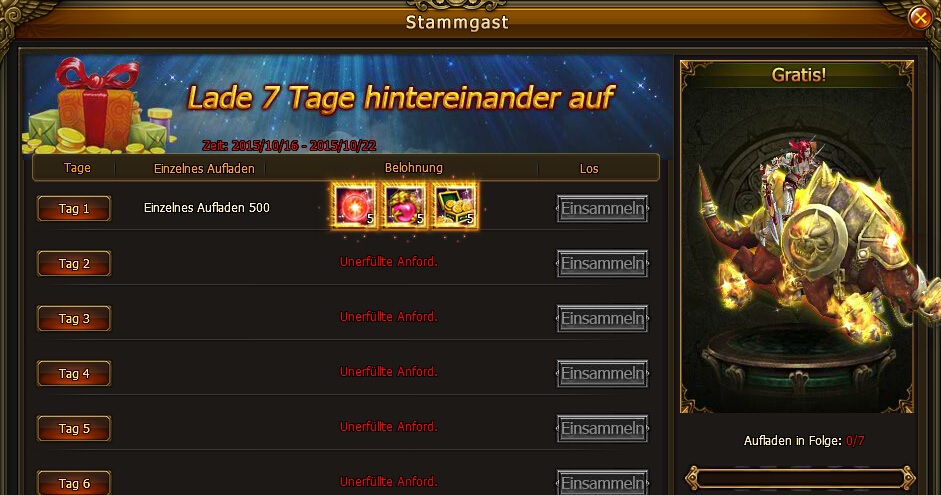 1. Lade f?r 7 aufeinanderfolgende Tage auf und erhalte spezielle Items wie Fl?gel, Reittiere und Outfits.