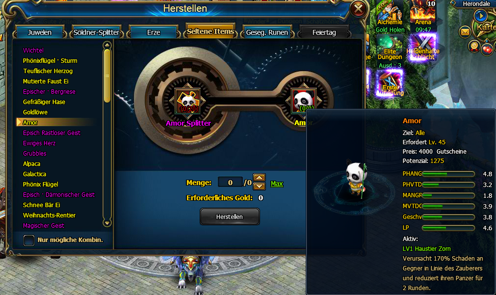 Anzeigefehler Herstellen - Seltene Items - Amor/Kung Fu Panda