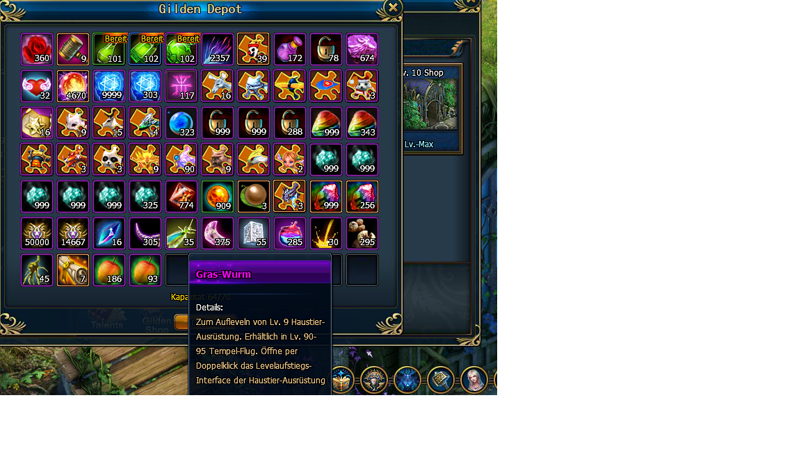 Nach der heutigen Serverwartung gibt`s Lvl.8 (Feige, Mondsten usw.) statt Lvl.9 Haustier-Ausr?stungsgegenst?nde im Tempel Flug Lvl.90