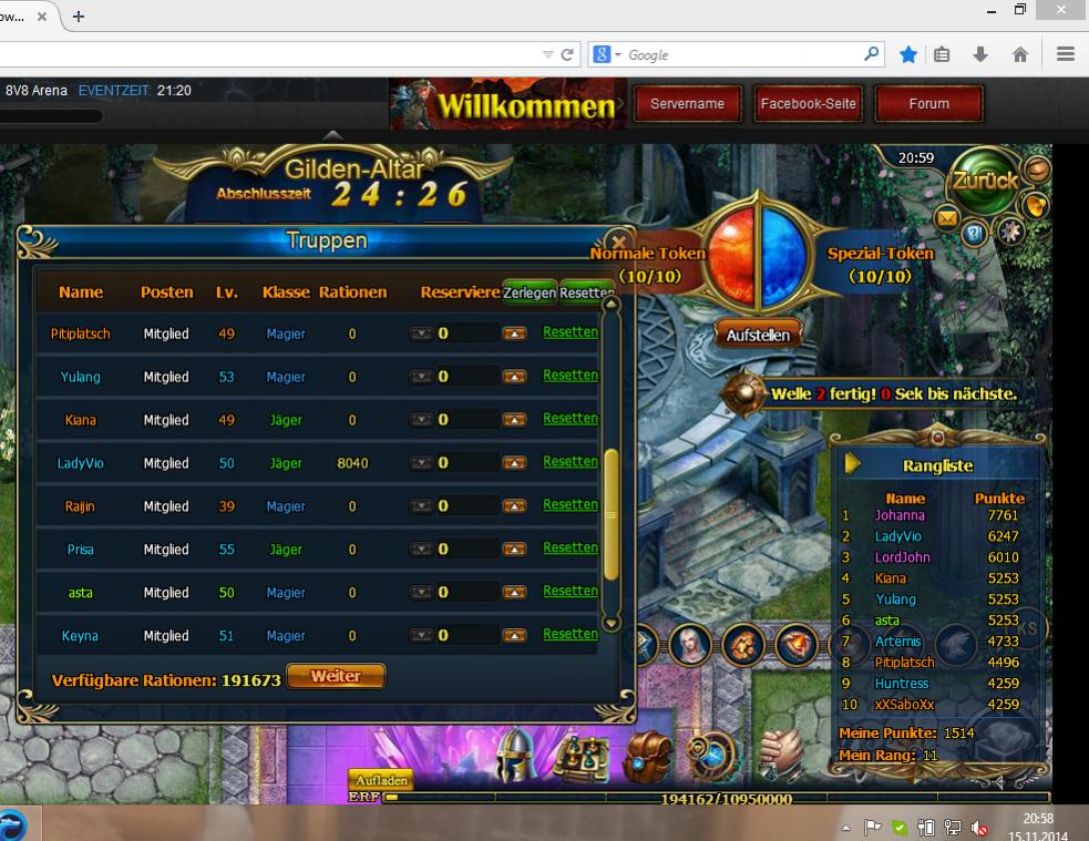 und zwar folgendes wir hatten vorvorgestern lvl 3 im altar erreicht und vorgestern damit angegfangen ich hatte jeden 50k ration gegeben die da waren am n?chsten tag waren alles weg und gestern hab ich 20k an jeden verteielt heute wieder alle bei 0