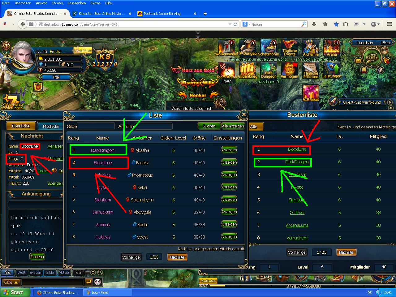 huhu, hab bis jetzt gewartet um zu schauen ob es sich aktualisiert i wann , aber das hat es nicht gemacht. seit 2 tage selbe anzeige gildenfenster,gildenliste und rangliste
