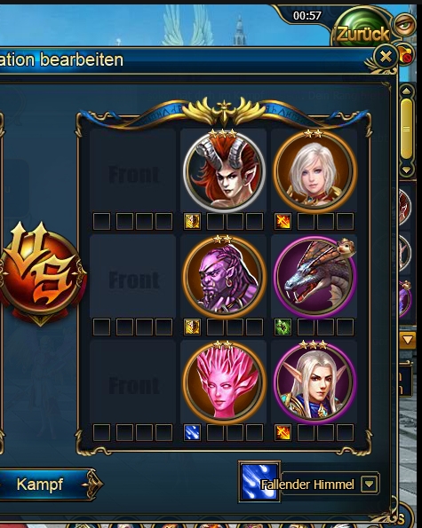 ... der erste Screen zeigt die Arena-Aufstellung eines Gegners, nach der ich meine Aufstellung vorbereitet habe