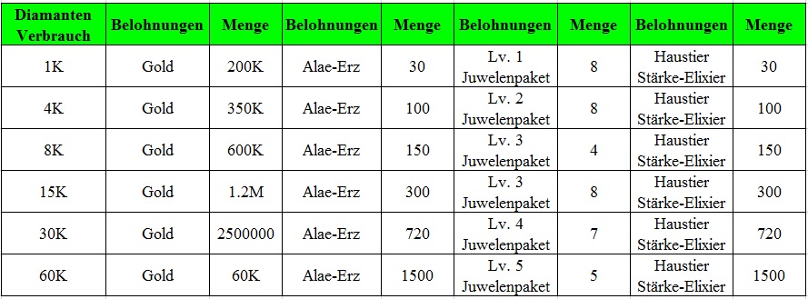 Beschreibung: Lade die ben?tigte Menge auf, um fantastische Belohnungen zu erhalten. Jede Belohnung kann nur einmal abgeholt werden.