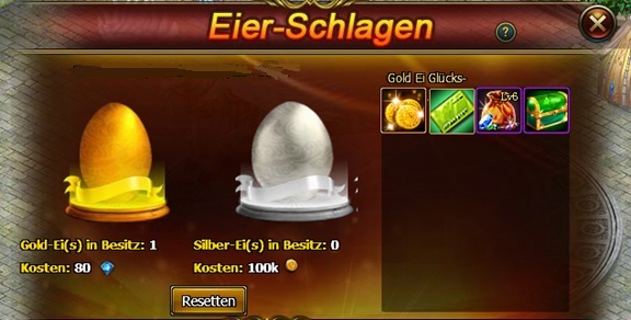 Erwerbe Gold und Silber Eier folgenderma?en: