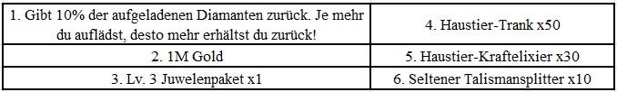 Beschreibung: Lade eine bestimmte Menge auf und erhalte fantastische Belohnungen.