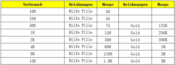 Beschreibung: Werde f?r den Verbrauch der folgenden Mengen von Hilfe Materialien belohnt. Event wird t?glich zur?ckgesetzt.