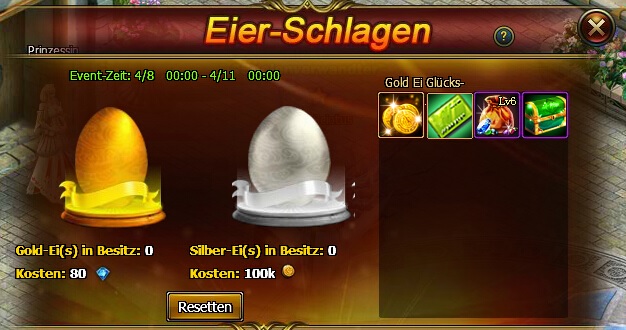 Erwerbe Gold und Silber Eier folgenderma?en: