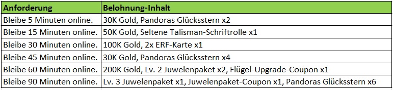 Beschreibung: Beende w?hrend des Events folgendes, um eine Belohnung zu erhalten! Verf?gbar nur f?r Server ?lter als 30 Tage.