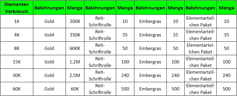 Beschreibung: Lade 100 Diamanten oder mehr auf um Tonnen an Belohnungen zu erhalten. Verf?gbar f?r Server ?lter als 7 Tage.