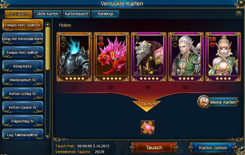 - Tausche Karten gegen Belohnungen oder spalte sie auf zu Kartenpunkten. Kartenpunkten k?nnen gegen Karten getauscht werden.