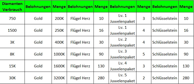 Beschreibung: Lade 100 Diamanten oder mehr auf um Tonnen an Belohnungen zu erhalten. Verf?gbar f?r Server ?lter als 7 Tage.