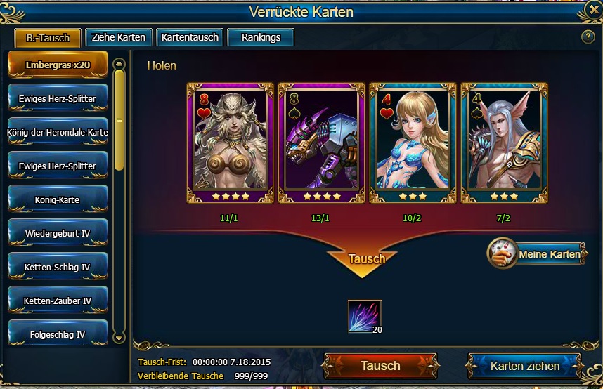b?Tausche Karten gegen Belohnungen oder spalte sie auf zu Kartenpunkten. Kartenpunkten k?nnen gegen Karten getauscht werden.
