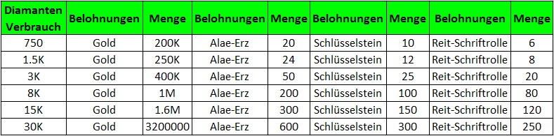 Belohnungen: Ph?nixfl?gel-Splitter, Alpace Splitter, Juwel-Essenz, Juwelenpaket, etc.