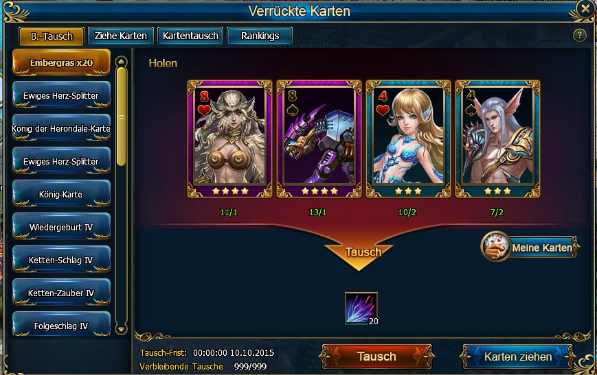 b?Tausche Karten gegen Belohnungen oder spalte sie auf zu Kartenpunkten. Kartenpunkten k?nnen gegen Karten getauscht werden.