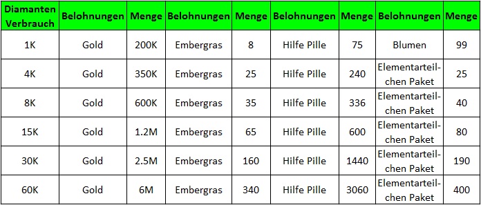 Beschreibung: Lade die ben?tigte Menge auf, um fantastische Belohnungen zu erhalten. Jede Belohnung kann nur einmal abgeholt werden.