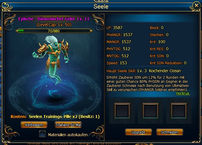 - Seelen k?nnen trainiert oder mit anderen Seelen verschmolzen werden, um ERF zu erhalten und Seelen Stats zu verbessern