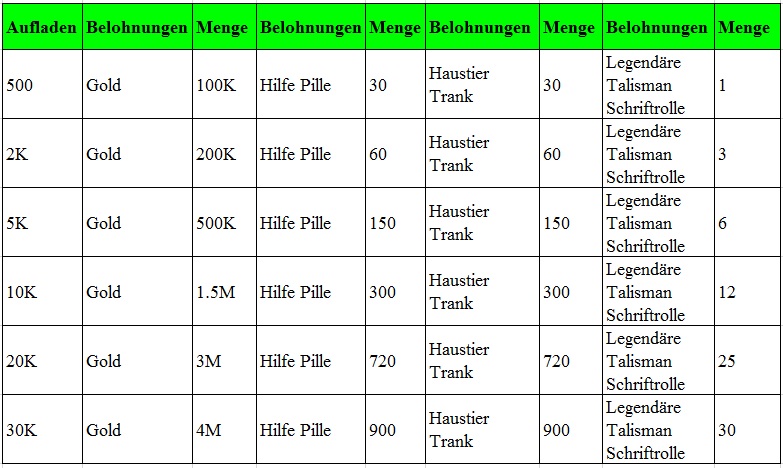 Beschreibung: Lade eine bestimmte Menge auf und erhalte fantastische Belohnungen.