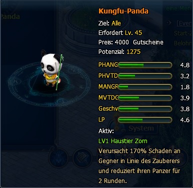 Belohnungen: Neues Haustier Kungfu-Panda Splitter, Haustier Skill-Paket, Lv. 7 und 8 Juwelenpaket, etc.